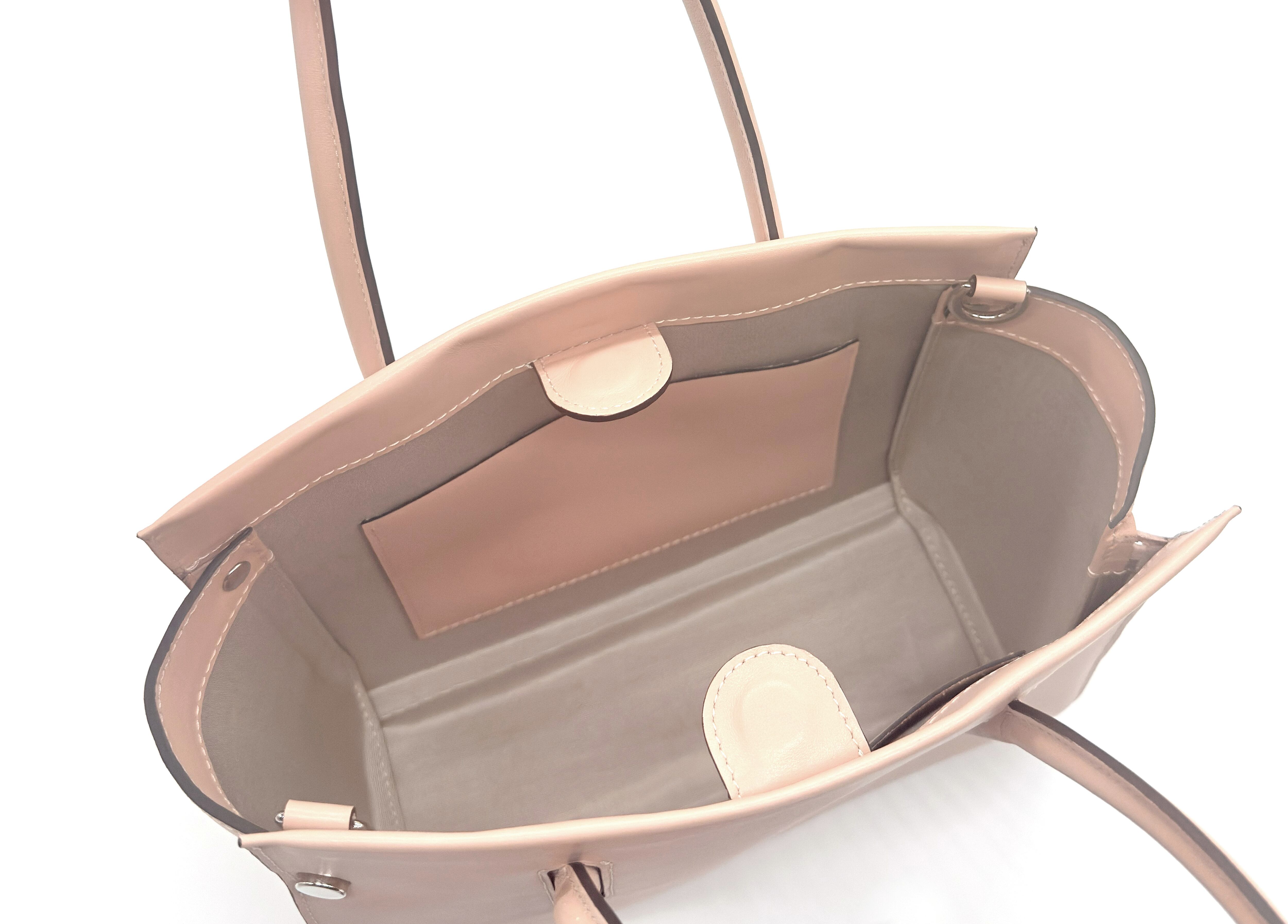 開口部はマグネットホックで簡単に開閉でき、大きく開くので出し入れもスムーズ。内部にはポケットも設けており、小物の整理が簡単に行えます。